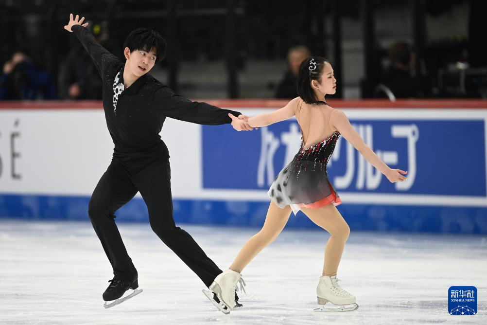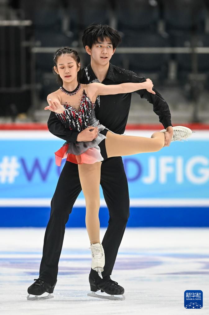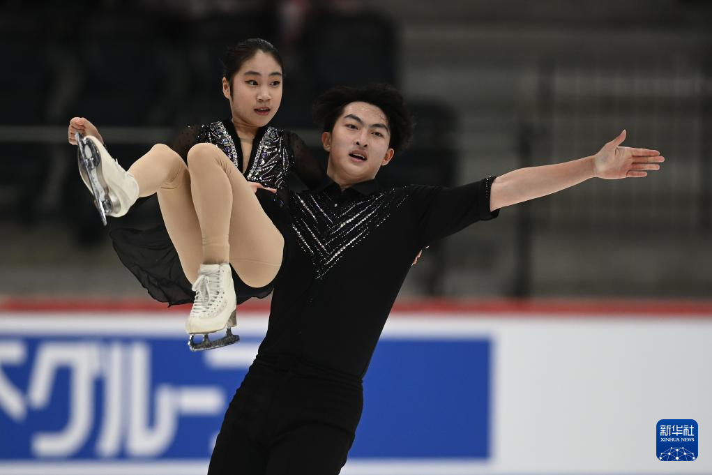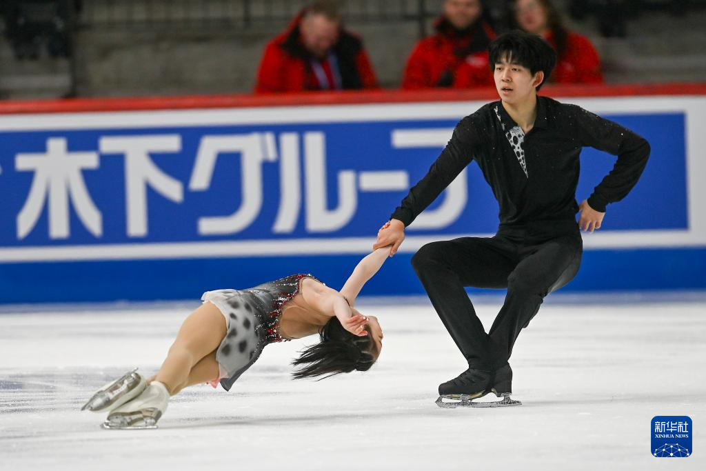 3月4日, 中国组合陈雨萱(右)/董胤博在双人滑短节目比赛中。最终,他们暂列第六名。