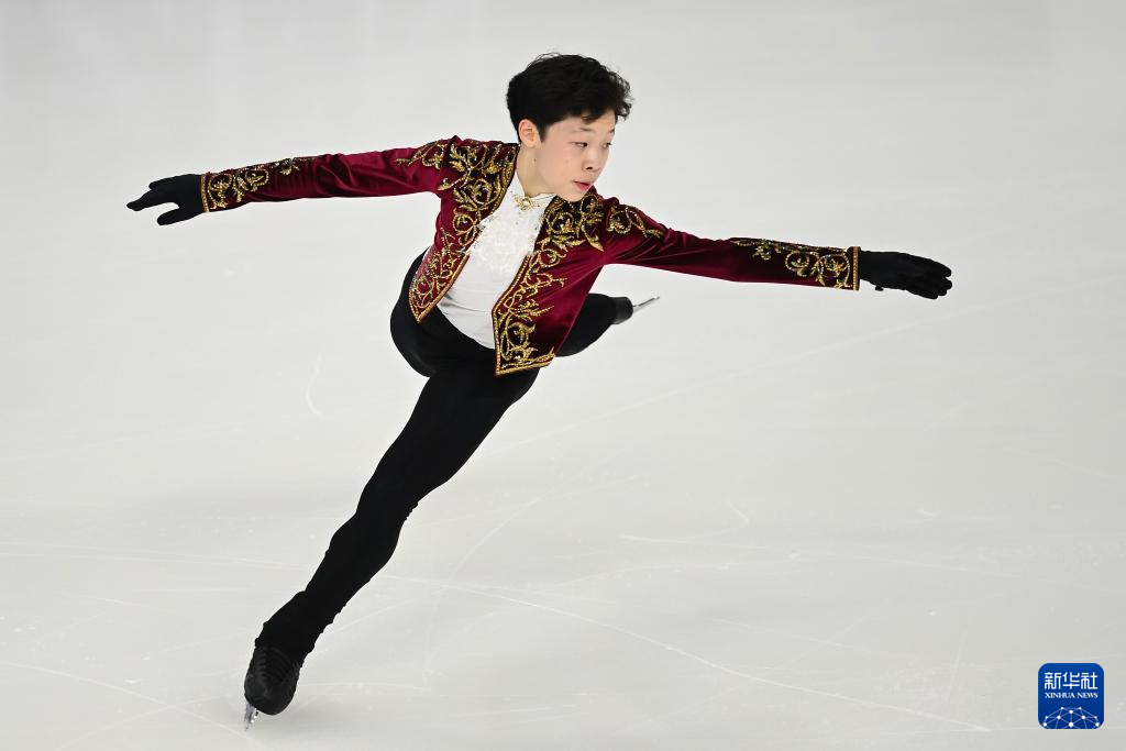 3月4日, 中国选手赵启涵在男子单人滑短节目比赛中。最终,他暂列第22名。