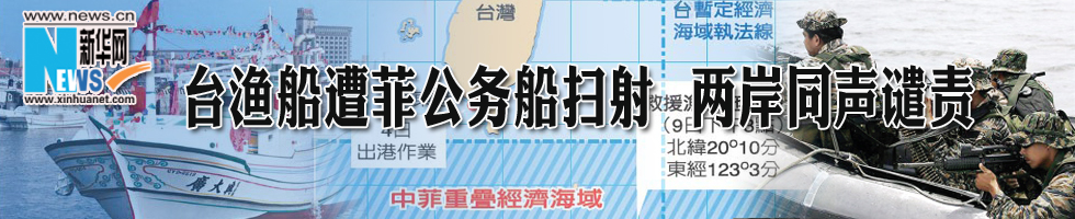 | · | 外交部強(qiáng)烈譴責(zé)菲律賓射殺臺(tái)漁民的行徑 (05-10) |