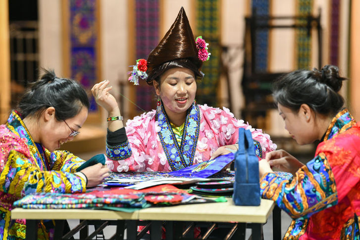 高興之余,我也面臨新挑戰(zhàn)。面對(duì)苗繡傳承、傳播青黃不接的窘境,我意識(shí)到自己有責(zé)任和義務(wù)把苗繡等苗族文化傳承下去、傳播出去。我想,我一個(gè)人的力量太小,把技藝傳給姐妹們也只能影響幾十、幾百人,如果學(xué)校、社會(huì)都參與進(jìn)來,我們下一代就會(huì)有更多的熱情和意識(shí)主動(dòng)去學(xué)習(xí)、傳承民族文化。