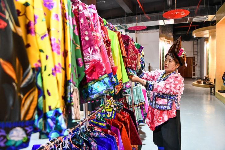 看到我們的生意越做越火,村里更多的姐妹也想加入進(jìn)來,于是,我在2014年成立了民族刺繡專業(yè)合作社,組織大家一起生產(chǎn)。人多了、機(jī)器多了、創(chuàng)意也多了。我們把苗繡元素與現(xiàn)代服飾相結(jié)合,把不同大小、圖案的繡片點(diǎn)綴縫制在背包、衣服、鞋子上,讓消費(fèi)者無論逛街還是上班都能穿,很受市場(chǎng)歡迎。