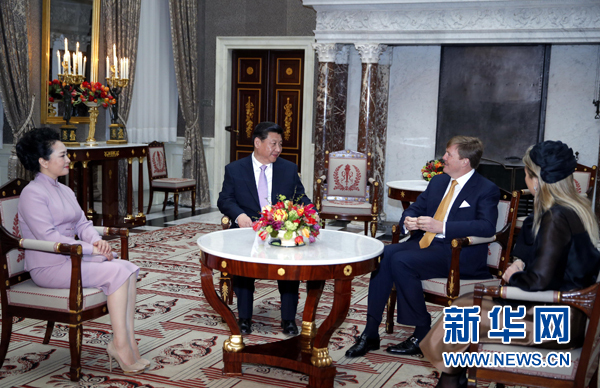 國家主席習(xí)近平在阿姆斯特丹會見荷蘭國王威廉-亞歷山大。新華社記者鞠鵬攝