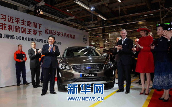 ????新華網(wǎng)北京4月1日電 據(jù)新華社“新國際”微博報道,1日上午,即將結(jié)束訪歐行程的習(xí)近平主席在菲利普國王夫婦陪同下,參觀了比利時最大的汽車生產(chǎn)企業(yè)沃爾沃根特工廠,受到中比兩國員工夾道歡迎。習(xí)近平饒有興致地觀看展品,不時詢問生產(chǎn)情況。企業(yè)負(fù)責(zé)人還把一個手工制造的“中國紅”汽車模型贈給習(xí)近平。
