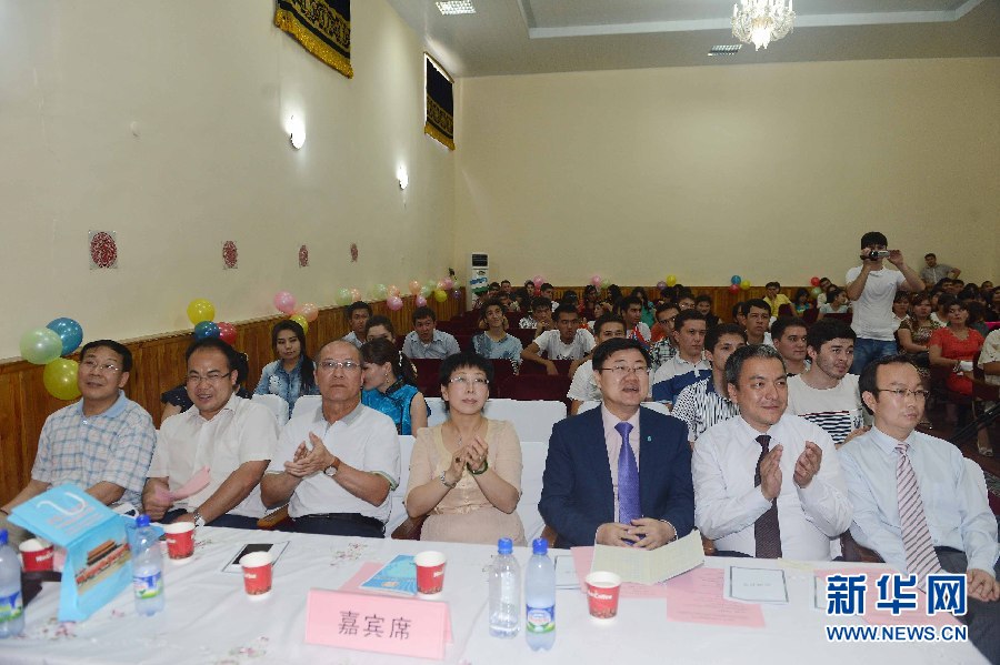 6月9日,烏茲別克斯坦首都塔什干的烏世界語(yǔ)言大學(xué)禮堂活動(dòng)現(xiàn)場(chǎng)。?