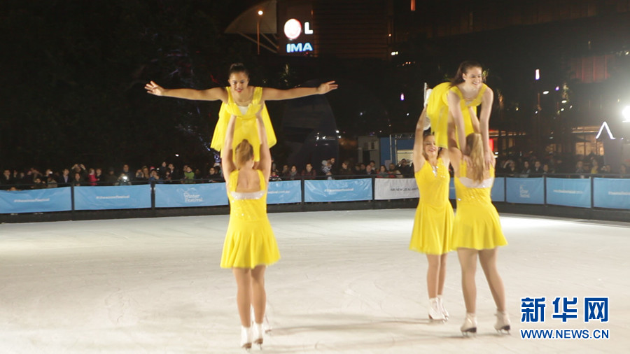 ????6月13日起,為期1個(gè)月的大型冬季冰雪活動(dòng)在悉尼市中心的情人港(Darling Harbour)為悉尼市民冬季的生活增添了些許名副其實(shí)的冬季氣氛。圖為滑冰場開幕式上,冰舞演員翩翩起舞。新華社記者 李冰 攝