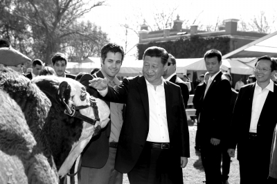 ????習(xí)近平受到農(nóng)場主莫內(nèi)塔一家熱情迎接。莫內(nèi)塔向習(xí)近平介紹,莊園畜養(yǎng)牲畜近萬頭,培育了許多優(yōu)秀種馬和肉牛品種。習(xí)近平邊聽邊詳細(xì)詢問牲畜養(yǎng)殖和農(nóng)場經(jīng)營情況。習(xí)近平指出,阿根廷是農(nóng)牧業(yè)大國,農(nóng)業(yè)現(xiàn)代化水平和科技水平很高。中國也是農(nóng)業(yè)大國。中國要發(fā)展,必須首先解決好13多億人口吃飯問題。中國高度重視農(nóng)業(yè),堅持立足國內(nèi)、確保糧食自給自足,同時積極利用國際市場,參與國際合作,調(diào)劑農(nóng)副產(chǎn)品。中方愿意同阿方加強農(nóng)業(yè)領(lǐng)域合作,擴大農(nóng)產(chǎn)品貿(mào)易。