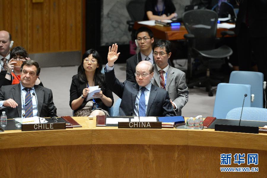 ??? 7月21日,在紐約聯(lián)合國總部,中國常駐聯(lián)合國代表劉結(jié)一(中)參加安理會就決議草案進(jìn)行的表決。聯(lián)合國安理會21日通過決議,強(qiáng)烈譴責(zé)馬來西亞航空公司MH17航班墜毀事件,同時敦促各方充分配合對這一事件的國際調(diào)查。新華社記者牛曉雷攝