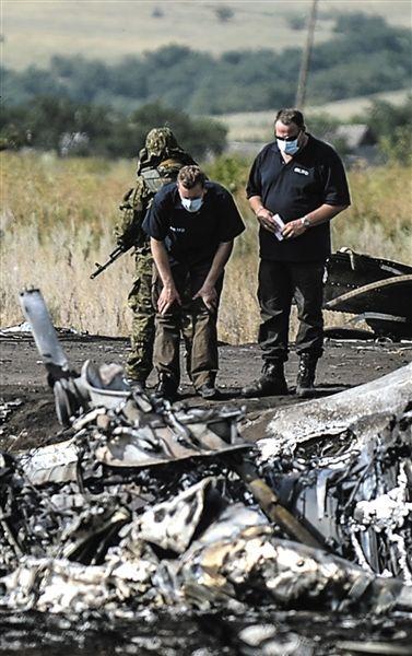 25日,烏克蘭頓涅茨克,調(diào)查人員在馬航墜機現(xiàn)場。