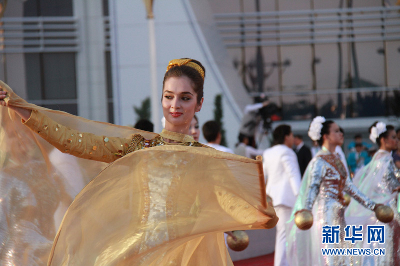 身著節(jié)日盛裝的土庫(kù)曼斯坦美女在跳舞 記者 盧敬利攝