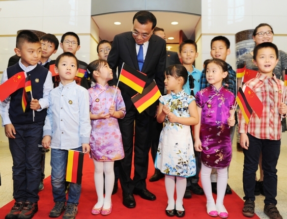 克強總理問了問孩子們的年齡、年級,又跟學(xué)校老師聊起孩子們的學(xué)習(xí)情況,與大家一起合影,鼓勵孩子們“做中德交往的橋梁”。