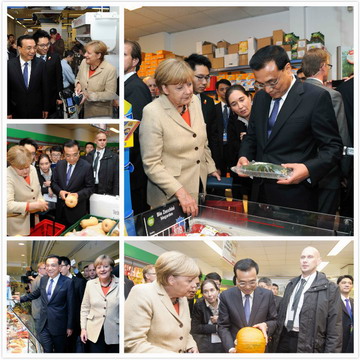 此外,默克爾總理還帶李總理光顧了柏林一家超市。默克爾向李總理推薦了一款可以寄給家人的明信片,并大方的買下,做為禮物送給李總理??粗羁偫砼踔聡?guó)的南瓜,小編真的忍不住要說,“真心沒咱的南瓜好吃??!”