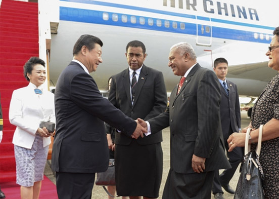 ????習(xí)主席在開場白中,首先就提到了東道主對中國代表團(tuán)的熱情接待和周到安排:“昨天下飛機(jī),歡迎儀式很隆重。接著,又安排了具有斐濟(jì)民族特色的歡迎儀式和盛大的歡迎晚宴。我再一次對總理先生和斐濟(jì)政府表示感謝?!?/font>