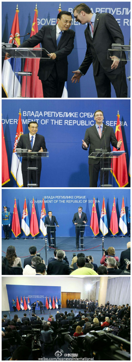 ????新華網(wǎng)北京12月18日電,據(jù)新華社“新國際”微博報道,當?shù)貢r間17日下午,李克強總理與塞爾維亞總理武契奇共同會見記者。他說,中方愿與塞方筑牢政治互信基石,挖掘務實合作潛力,深耕人文交流土壤,推動中塞戰(zhàn)略伙伴關系發(fā)展。中塞友誼有著良好傳統(tǒng),而且歷久彌新,就像當?shù)氐腖oza酒一樣,經(jīng)年陳釀、愈發(fā)醇香。?