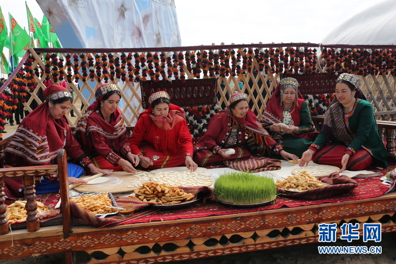 ????以往過著游牧和半游牧生活的人們在冰雪消融、牲畜產(chǎn)仔的時(shí)節(jié),都會以這一傳統(tǒng)佳節(jié)歡慶新生活。 21日上午,在阿什哈巴德以東40來公里處專門為節(jié)日搭建的場地上,土庫曼斯坦內(nèi)閣、外交使節(jié)、民眾和學(xué)生參加了隆重的慶?;顒?dòng)?;顒?dòng)中,青年男女、學(xué)齡前兒童載歌載舞,民眾和藝術(shù)家展示傳統(tǒng)的編織和手工藝術(shù),青年男女高高地蕩起秋千,汗血寶馬進(jìn)行馬技表演,土庫曼咬狼犬、羊群和駱駝或圍在欄子里,或被主人牽在手中,展現(xiàn)出游牧民族的生活景象。