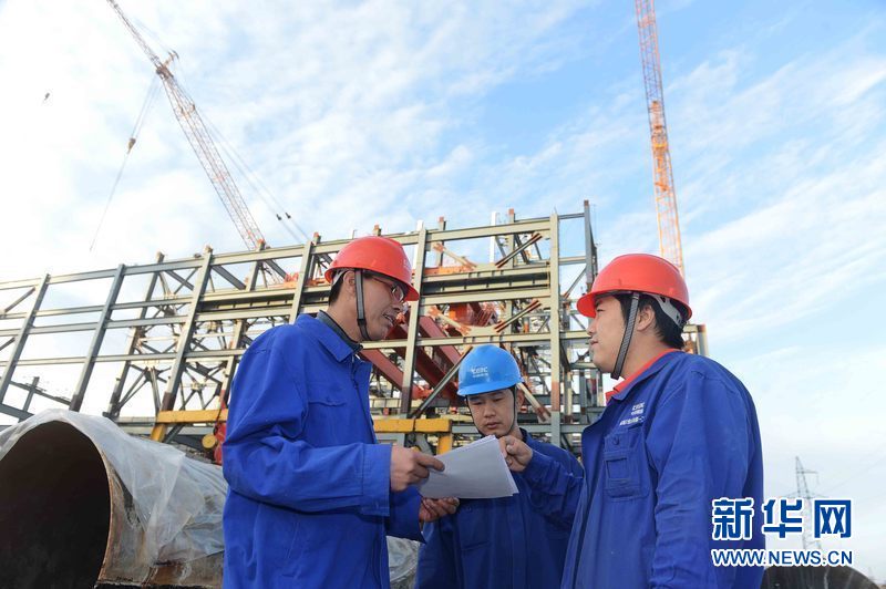 ????烏茲別克斯坦安格連(市)電廠主廠房鋼結(jié)構(gòu)施工,項(xiàng)目經(jīng)理兼項(xiàng)目黨支部書記楚相華(左)在與現(xiàn)場(chǎng)技術(shù)人員一起探討工程進(jìn)度等情況。新華網(wǎng)發(fā) 記者沙達(dá)提 攝