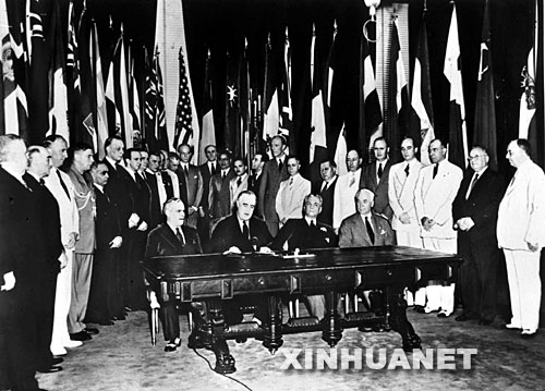 這是1942年1月1日,中、美、英、蘇等26國代表在華盛頓簽署《聯(lián)合國宣言》。 新華社發(fā)