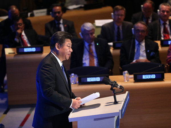 26日,在聯(lián)合國發(fā)展峰會上,習(xí)近平發(fā)表題為《謀共同永續(xù)發(fā)展 做合作共贏伙伴》的重要講話。
