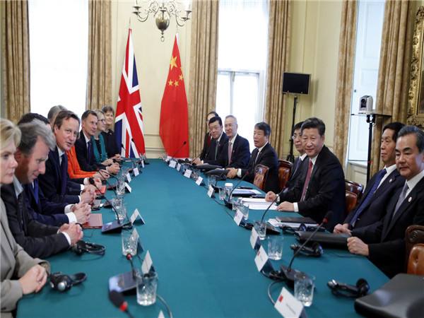 習(xí)近平說:“中英關(guān)系和中歐關(guān)系發(fā)展面臨繼往開來的重要機遇。英國是歐盟重要成員國,中英關(guān)系同中歐關(guān)系相輔相成?!?/p>
