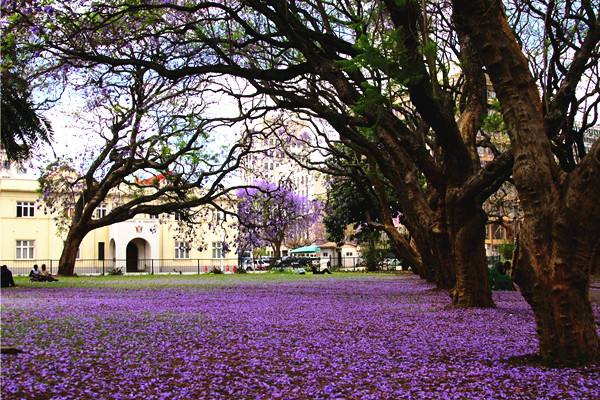 直至今天,漫步在哈拉雷街道上依舊能感受到英國小鎮(zhèn)氣息,每年9至10月份,紫色的藍(lán)花楹盛開之際,全城沉浸在紫色的花海中。