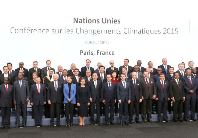 11月30日,國家主席習(xí)近平在巴黎出席氣候變化巴黎大會開幕式并發(fā)表題為《攜手構(gòu)建合作共贏、公平合理的氣候變化治理機制》的重要講話。這是與會領(lǐng)導(dǎo)人合影。新華社記者馬占成攝