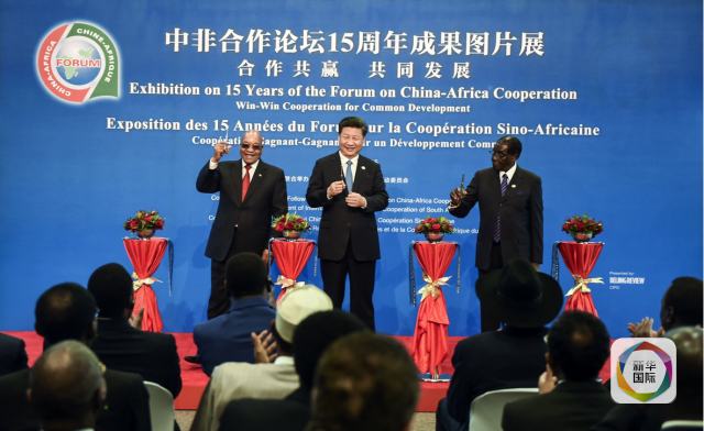 12月4日,國家主席習(xí)近平在約翰內(nèi)斯堡出席中非合作論壇15周年成果圖片展開幕式,同南非總統(tǒng)祖馬,非盟輪值主席、津巴布韋總統(tǒng)穆加貝一道為展覽剪彩。這是習(xí)近平同非洲國家和地區(qū)組織領(lǐng)導(dǎo)人觀看展覽。(新華社記者謝環(huán)馳攝)