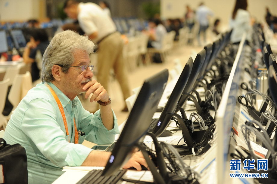 二十國集團工商峰會(B20)于9月3日至4日在杭州舉辦。作為G20機制的重要配套活動,B20是各國工商界參與全球經(jīng)濟治理和推動世界經(jīng)濟增長的重要平臺。圖為工商峰會開幕當(dāng)天,新聞中心內(nèi)記者忙碌的身影。新華網(wǎng) 陳競超 攝
