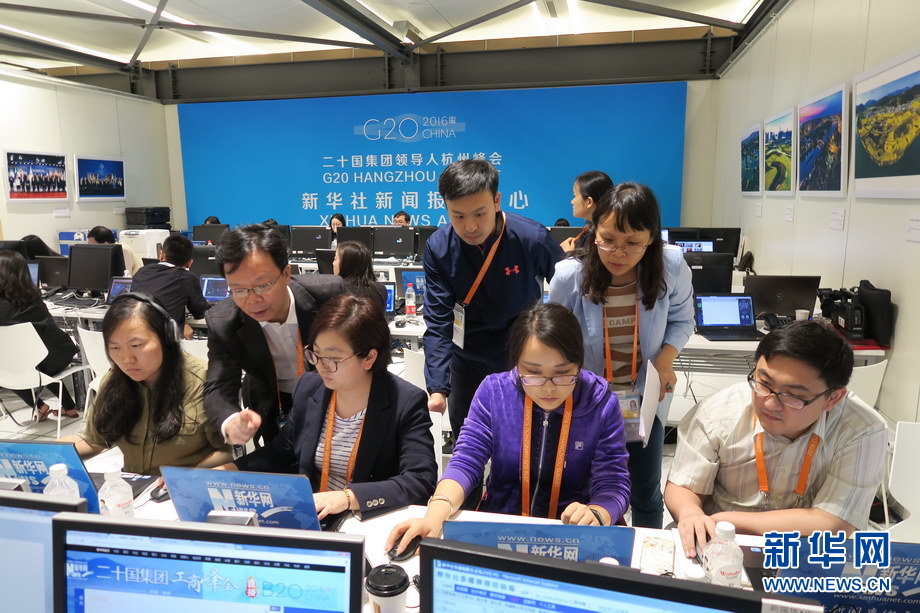 二十國集團(tuán)領(lǐng)導(dǎo)人第十一次峰會9月4日至5日在浙江杭州舉行。峰會新聞中心一派繁忙景象,境內(nèi)外各路媒體記者使出“洪荒之力”,實(shí)時報(bào)道峰會動態(tài)。新華網(wǎng)記者 陳競超 攝