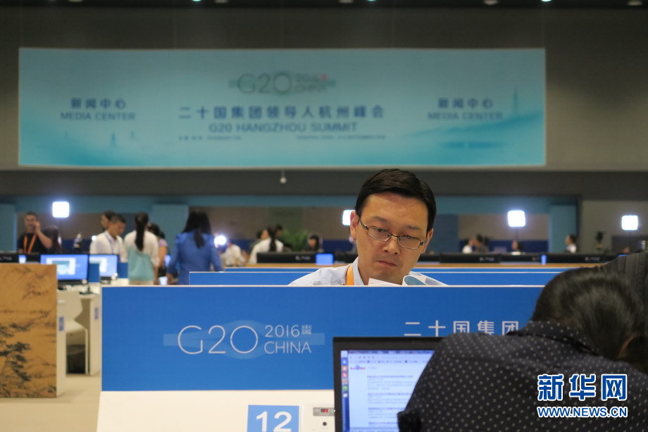 二十國(guó)集團(tuán)領(lǐng)導(dǎo)人第十一次峰會(huì)9月4日至5日在浙江杭州舉行。峰會(huì)新聞中心一派繁忙景象,境內(nèi)外各路媒體記者使出“洪荒之力”,實(shí)時(shí)報(bào)道峰會(huì)動(dòng)態(tài)。新華網(wǎng)記者 陳競(jìng)超 攝