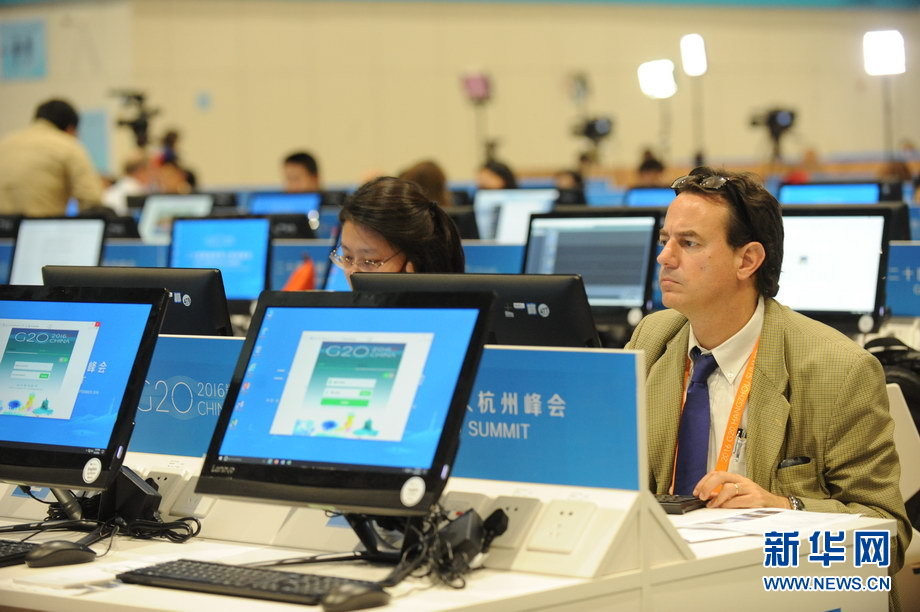 二十國集團領(lǐng)導(dǎo)人第十一次峰會9月4日至5日在浙江杭州舉行。峰會新聞中心一派繁忙景象,境內(nèi)外各路媒體記者使出“洪荒之力”,實時報道峰會動態(tài)。新華網(wǎng)記者 陳競超 攝