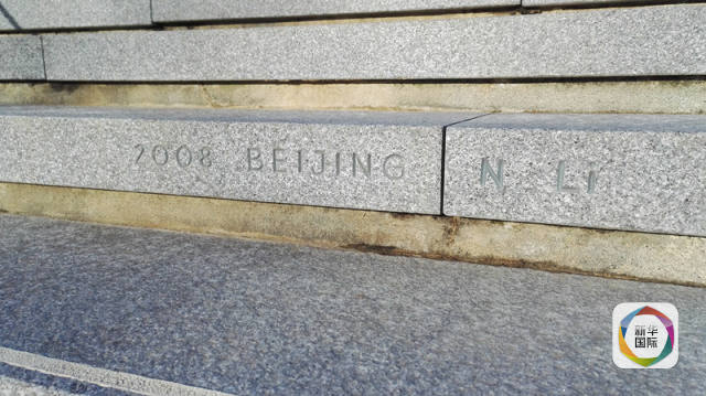 刻著北京奧運會最后一棒火炬手李寧名字的臺階。新華社記者高鵬攝