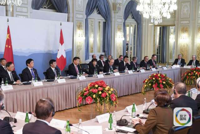 1月16日,國(guó)家主席習(xí)近平在伯爾尼同瑞士聯(lián)邦主席洛伊特哈德共同會(huì)見(jiàn)瑞士經(jīng)濟(jì)界代表。(新華社記者 李學(xué)仁 攝)