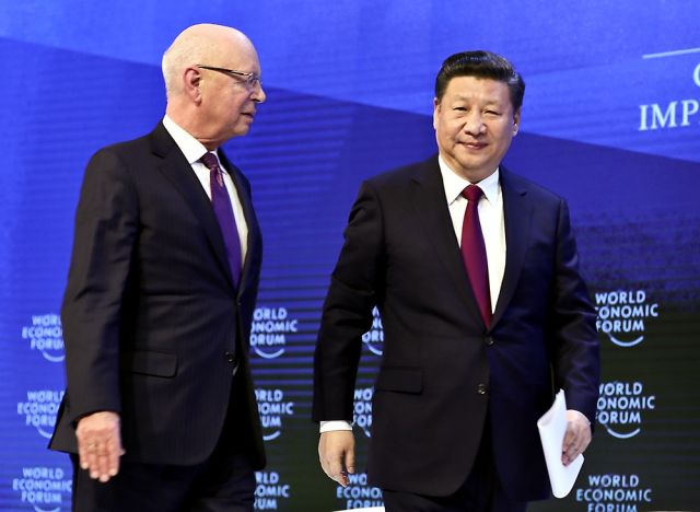 1月17日,國(guó)家主席習(xí)近平在瑞士達(dá)沃斯國(guó)際會(huì)議中心出席世界經(jīng)濟(jì)論壇2017年年會(huì)開幕式,并發(fā)表題為《共擔(dān)時(shí)代責(zé)任 共促全球發(fā)展》的主旨演講。這是習(xí)近平同世界經(jīng)濟(jì)論壇創(chuàng)始人兼執(zhí)行主席施瓦布在一起。(新華社記者蘭紅光攝)
