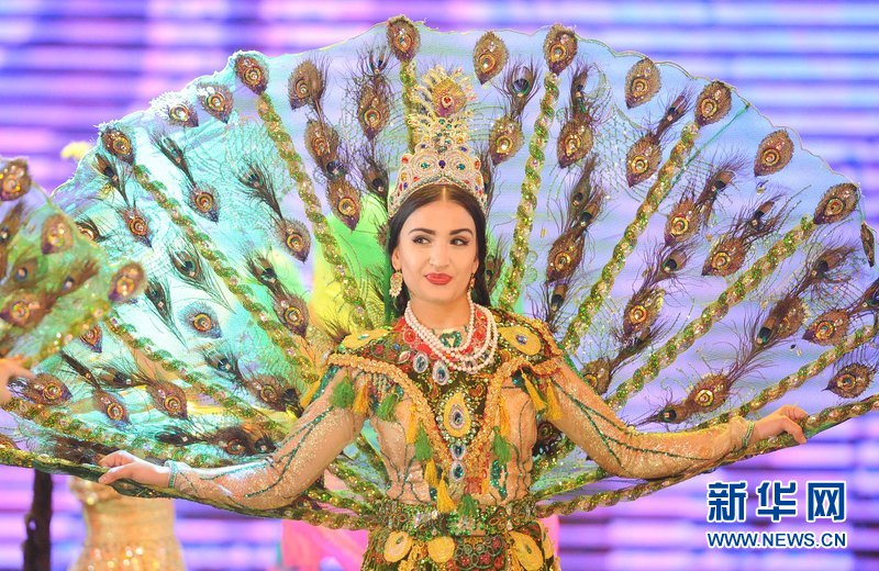 1月18日晚,烏茲別克斯坦首都塔什干人民友誼宮,烏茲別克斯坦舞蹈演員在表演中烏傳統(tǒng)舞蹈。