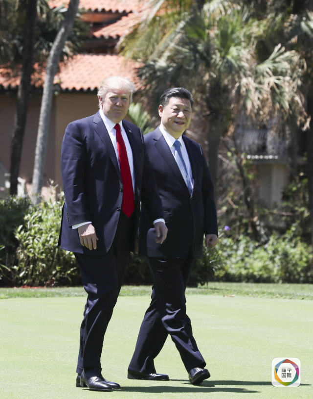 當?shù)貢r間4月7日,國家主席習近平在美國佛羅里達州海湖莊園同美國總統(tǒng)特朗普舉行中美元首第二場正式會晤。會晤后,習近平同特朗普到秀麗宜人的海湖莊園中散步,在輕松友好的氣氛中繼續(xù)就兩國友好合作進行討論。(新華社記者饒愛民攝)