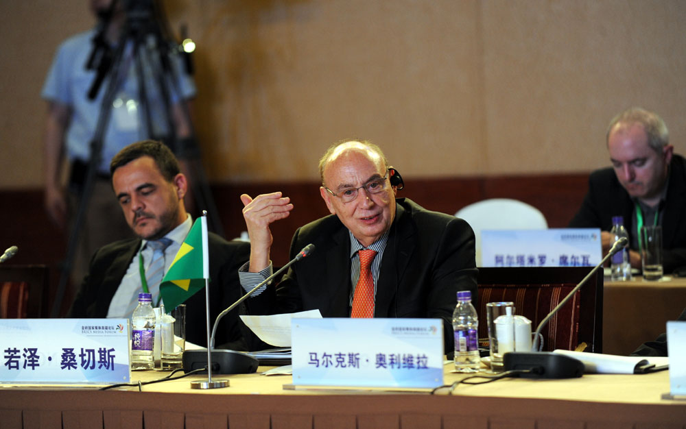 金磚國家媒體高端論壇開幕式6月8日在北京舉行。圖為論壇共同主席、巴西金融資訊集團(tuán)總裁若澤·桑切斯發(fā)表講話。 新華網(wǎng) 孫韜 攝