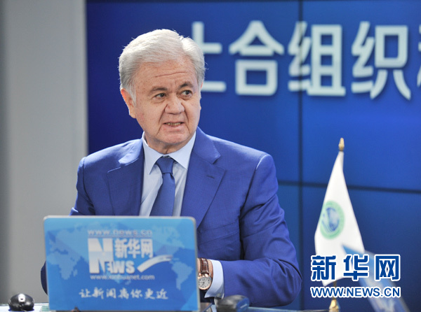 6月27日,上海合作組織秘書長拉希德·阿利莫夫與新華網(wǎng)友在線交流。新華網(wǎng) 李清攝