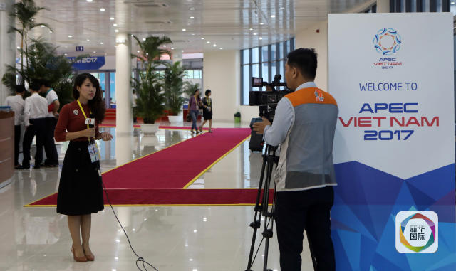 11月5日,在越南峴港,媒體記者在亞太經(jīng)合組織領(lǐng)導(dǎo)人會(huì)議周國(guó)際媒體中心進(jìn)行報(bào)道。新華社記者李鵬攝