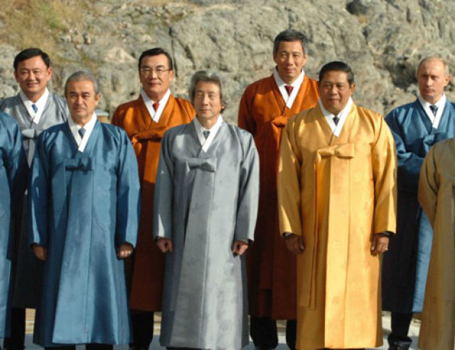 雖然是傳統(tǒng),不過也有例外。比如1995年在大阪舉行的會議,領導人并未穿著日本民族服裝。