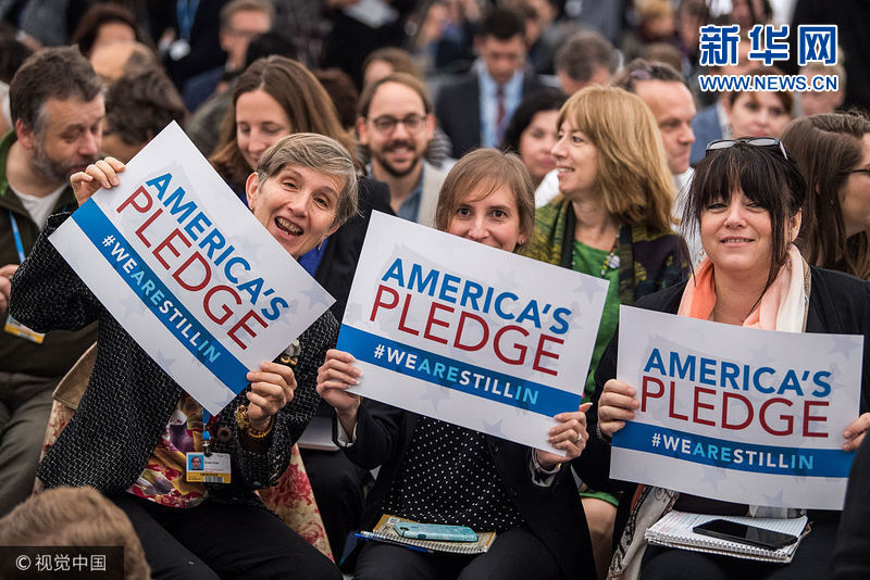 當(dāng)?shù)貢r(shí)間2017年11月11日,德國(guó)波恩,波恩氣候大會(huì)召開,“美國(guó)會(huì)館”內(nèi)景。雖然美國(guó)宣布退出了《巴黎協(xié)定》,但美國(guó)氣候談判代表仍出席了波恩的會(huì)議。美國(guó)除聯(lián)邦外的各級(jí)政府均派代表參加波恩會(huì)議,且主要目的就是表明他們?nèi)詫⒅铝τ趦冬F(xiàn)美國(guó)在巴黎做出的承諾。在美國(guó)國(guó)內(nèi),成千上萬(wàn)的市長(zhǎng)、州長(zhǎng)、部落首領(lǐng)、企業(yè)高管以及普通美國(guó)人都在努力降低溫室氣體排放。這個(gè)名為“我們?nèi)栽趫?jiān)守(We Are Still In)”的聯(lián)盟的成員代表了美國(guó)一半以上的人口以及54%的經(jīng)濟(jì)產(chǎn)出。“我們?nèi)栽趫?jiān)守”( We Are Still In)、“美國(guó)氣候聯(lián)盟”、“氣候市長(zhǎng)”(Climate Mayors)和其它諸多計(jì)劃向全世界傳遞了這樣一個(gè)信息,即美國(guó)仍然有很多人正致力于擁有宏偉目標(biāo)的氣候行動(dòng)之中,而“美國(guó)的承諾”(America’s Pledge)正在尋求如何量化并傳播這些承諾。(圖片來(lái)源:視覺(jué)中國(guó))