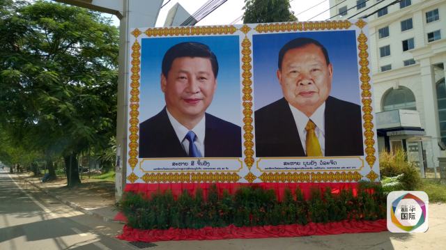 在老撾國家主席府正門,懸掛著習(xí)近平主席和老撾國家主席本揚(yáng)的大幅畫像。乘車路過的老撾青年人朝在主席府外采訪的中國記者熱情打著招呼,歡笑聲灑了一路。