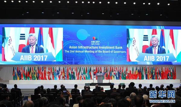 【第三次“吸粉”】2017年6月16日,亞投行宣布其理事會已批準(zhǔn)3個新意向成員加入,分別為阿根廷、馬達(dá)加斯加和湯加。至此,亞投行成員總數(shù)擴(kuò)至80個。圖為2017年6月16日,韓國濟(jì)州,亞投行第二屆年會開幕式現(xiàn)場。