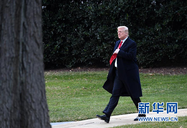 12月22日,在美國華盛頓白宮,美國總統(tǒng)特朗普簽署減稅法案后準(zhǔn)備乘直升機離開。 新華社記者殷博古攝
