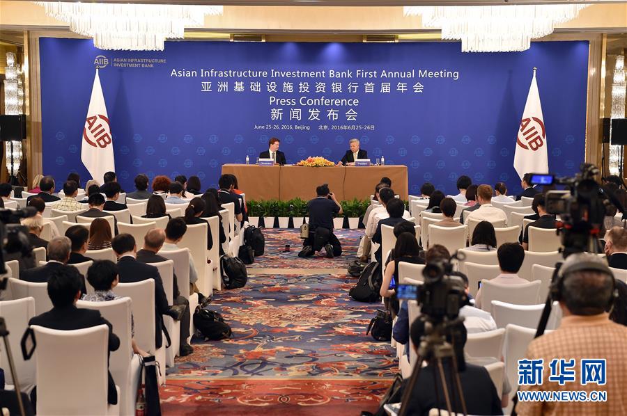 亞洲基礎設施投資銀行首屆年會在北京舉行新聞發(fā)布會(2016年6月25日攝)。新華社記者 李鑫 攝