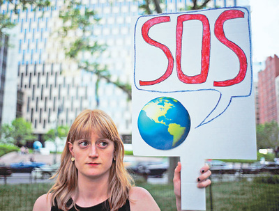 美國總統(tǒng)特朗普去年宣布美國退出應對全球氣候變化的《巴黎協(xié)定》。圖為在美國紐約,一名女子手持標語參加活動,抗議特朗普的決定。 新華社發(fā)