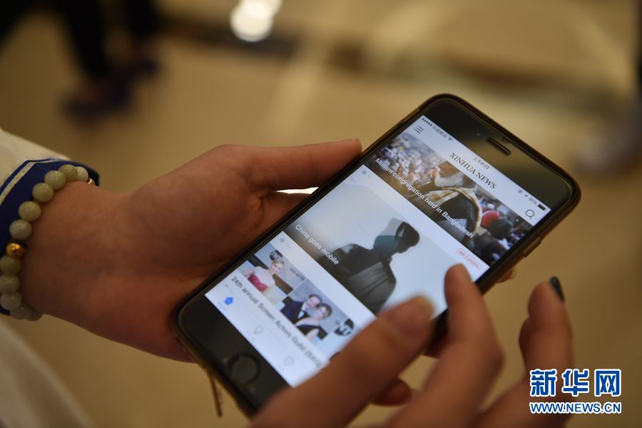 1月23日上午10:00,新華社英文客戶(hù)端上線發(fā)布會(huì)在總社大廈多功能廳舉行。圖為工作人員展示新華社英文客戶(hù)端。新華社記者 金良快攝