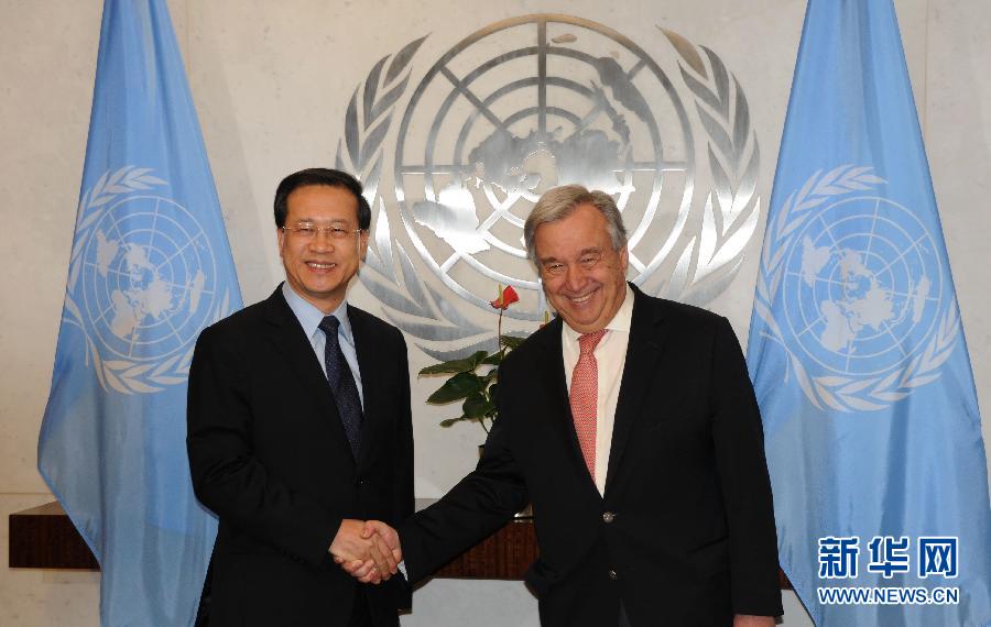 1月30日,在美國紐約,中國新任常駐聯(lián)合國代表馬朝旭(左)與聯(lián)合國秘書長古特雷斯握手。中國新任常駐聯(lián)合國代表馬朝旭30日說,中囯將同囯際社會一道,共同努力推動聯(lián)合國為維護世界和平、促進共同發(fā)展發(fā)揮更大作用。新華社記者馬建國攝