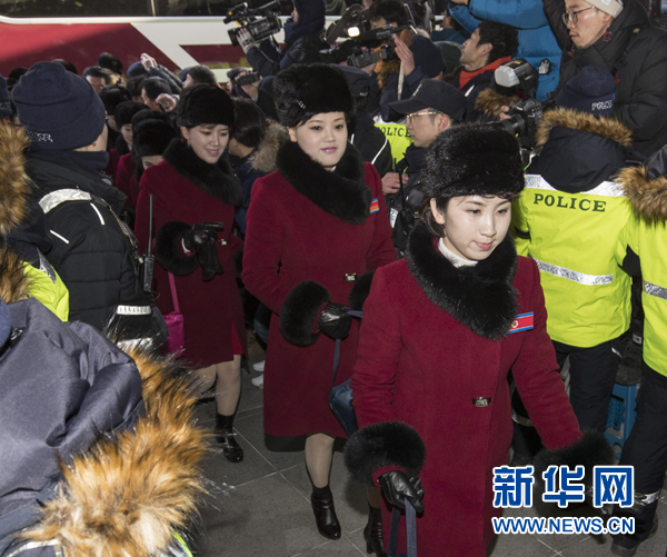 2月7日,朝鮮拉拉隊(duì)成員乘車(chē)到達(dá)韓國(guó)江原道麟蹄郡。當(dāng)日,參加平昌冬奧會(huì)的朝鮮拉拉隊(duì)、跆拳道示范團(tuán)、記者團(tuán)和民族奧林匹克委員會(huì)官員等一行280人經(jīng)由京義線(xiàn)陸路抵達(dá)韓國(guó)境內(nèi)。新華社發(fā)(李相浩攝)