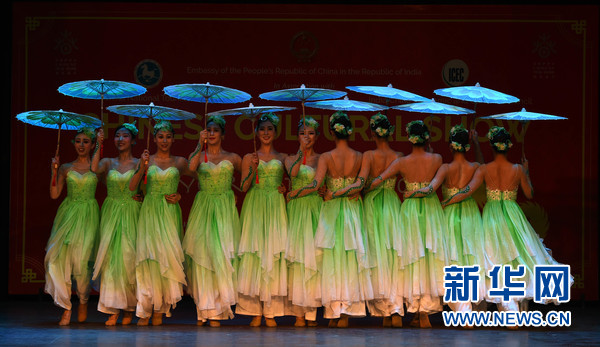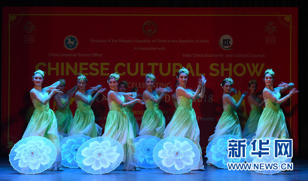 2月9日,在印度首都新德里,2018“歡樂(lè)春節(jié)”活動(dòng)演出現(xiàn)場(chǎng),中國(guó)演員在表演舞蹈。新華網(wǎng)發(fā)(張迺杰攝)