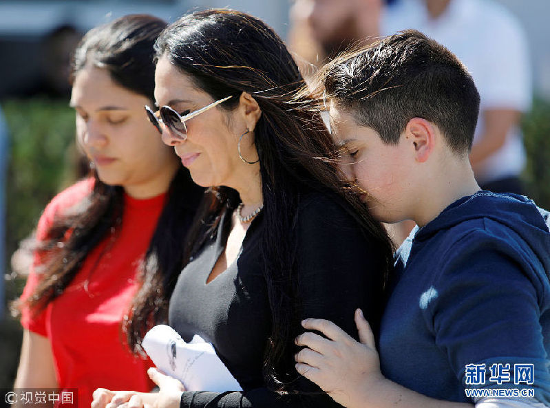 當(dāng)?shù)貢r(shí)間2018年2月15日,美國(guó)佛羅里達(dá)州波姆龐帕諾灘,民眾悼念槍擊案遇難者。當(dāng)?shù)貢r(shí)間14日下午2點(diǎn)25分左右,美國(guó)佛羅里達(dá)州南部帕克蘭一所高中發(fā)生槍擊案,目前已致至少17人死亡,多人受傷。(圖片來(lái)源:視覺(jué)中國(guó))