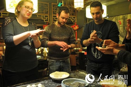 天津大學的外國留學生學包餃子,小哥哥一臉興奮,是不是把包餃子當玩游戲了?